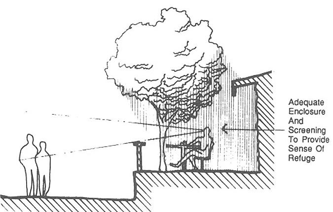 조망과은신 - 조망이 좋으며 은신이 잘되는 위치를 선호하는 경향